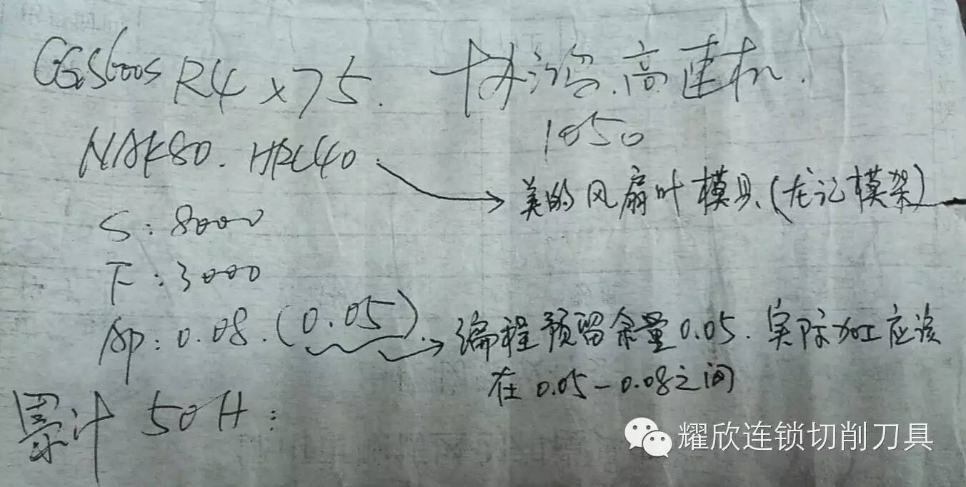 600S加工参数: